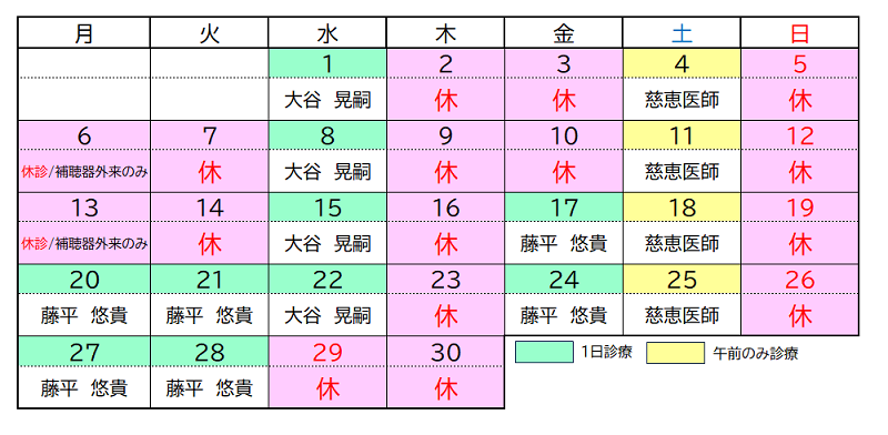 なお、4月6日(月)・13日(月)の補聴器外来をご予約の方は、予定通り診療を行いますのでご来院ください。